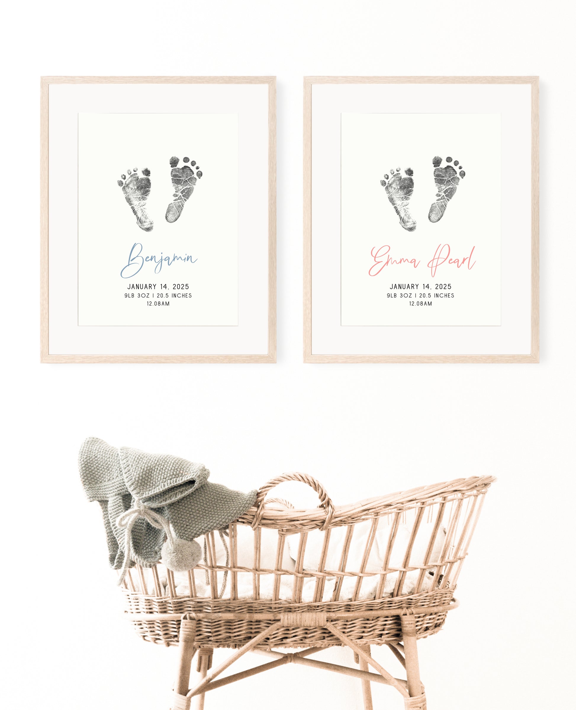 Celebrate your newborn’s arrival with a meaningful and elegant keepsake. Our personalized baby footprint art print captures this special moment in a timeless design. - Sizes: Available in 5x7 and 8x10 inches - Premium Quality: Professionally printed on premium matte paper - Perfect For: Nursery décor, baby books, baby showers, keepsake albums, or thoughtful gifts for family (grandparents, godparents, etc.) - Please Note: Frames and props are not included and are for display purposes only